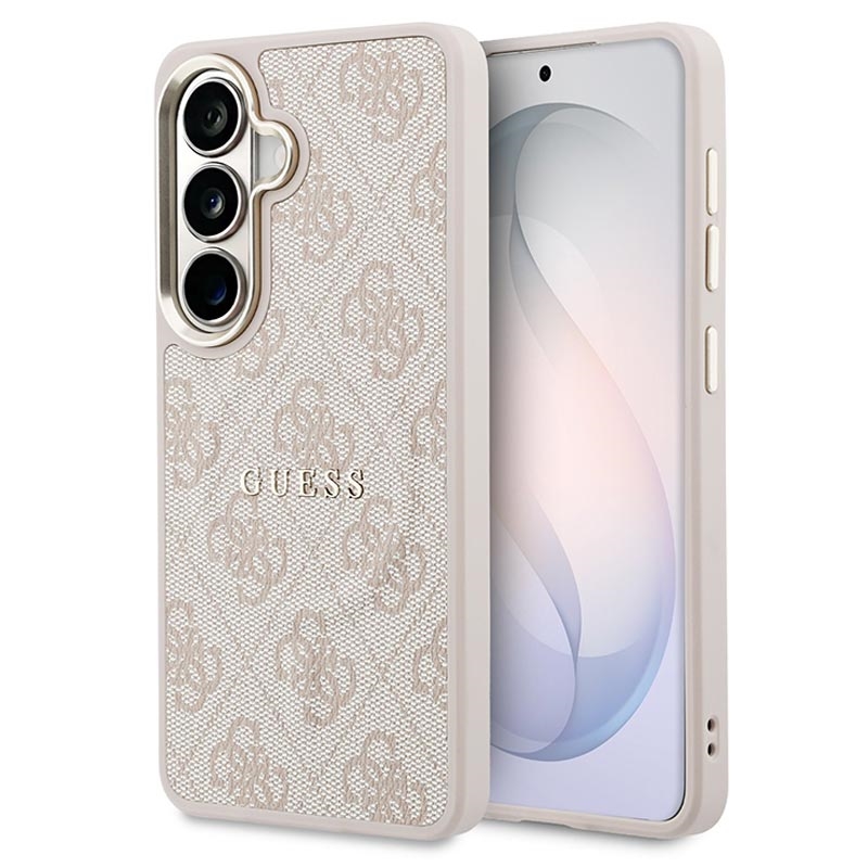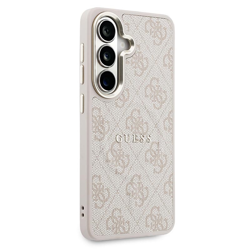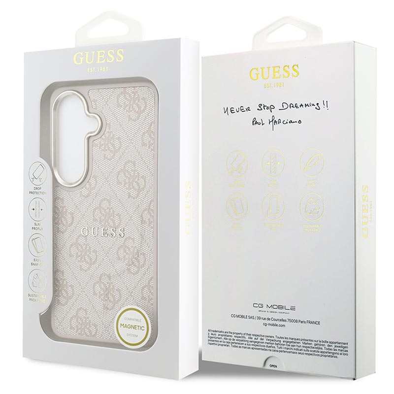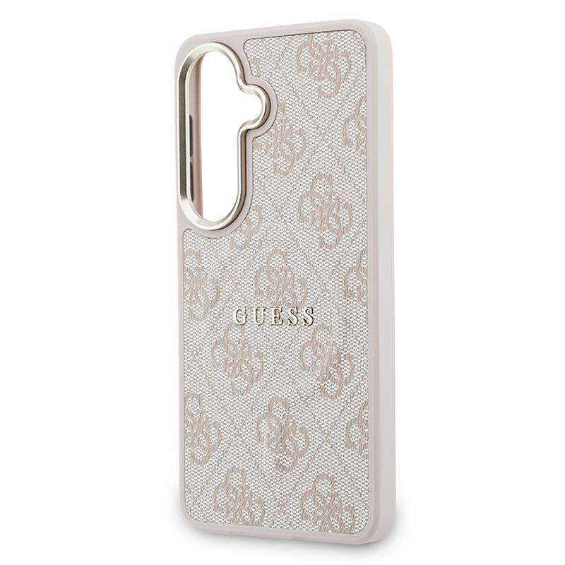 Coque MagSafe Guess 4G Gold Frame pour Samsung Galaxy S26 - Coque arrière protectrice fine, polyuréthane, compatible avec la recharge sans fil