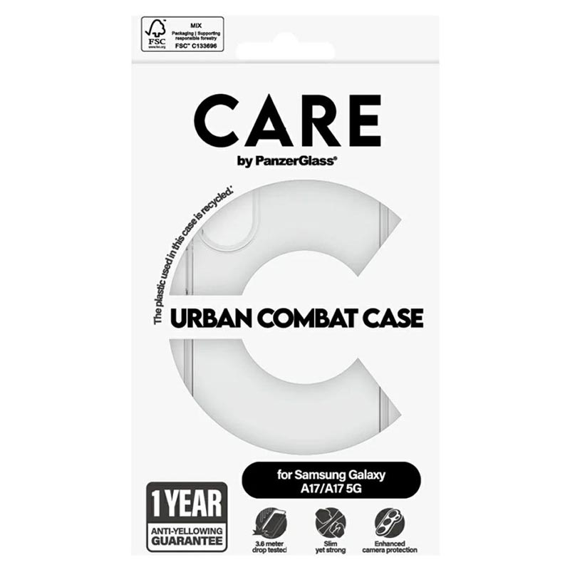 L'étui CARE by PanzerGlass Urban Combat Case offre une protection exceptionnelle tout en conservant un design épuré et élégant. Ses matériaux respectueux de l'environnement en font un choix de premier ordre pour les utilisateurs d'Samsung Galaxy A17, Galaxy M17.