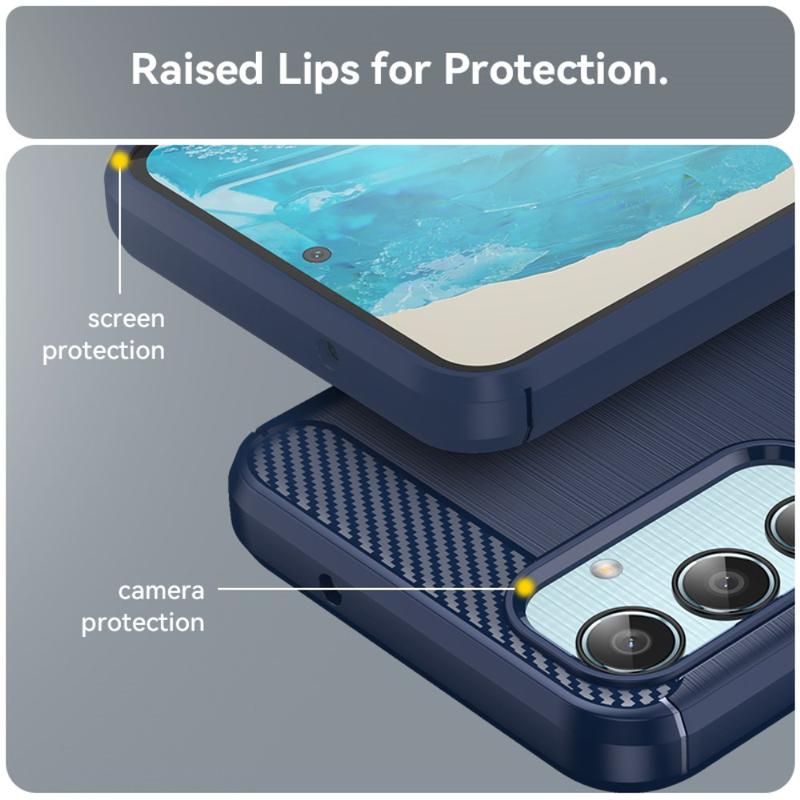 La coque en TPU brossé protège adéquatement votre Samsung Galaxy M35 tout en lui donnant un super style, grâce à son motif en fibre de carbone à l'arrière. La coque assure également une surchauffe lors de l'utilisation de votre Samsung Galaxy M35, grâce à sa conception à dissipation thermique.