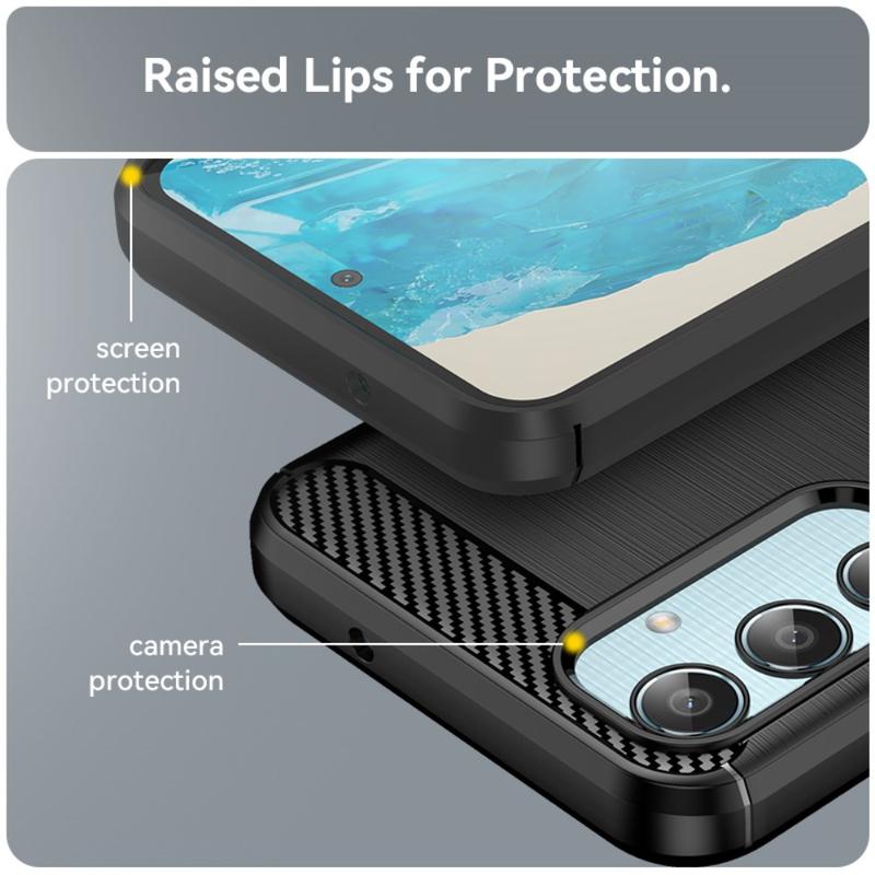 La coque en TPU brossé protège adéquatement votre Samsung Galaxy M35 tout en lui donnant un super style, grâce à son motif en fibre de carbone à l'arrière. La coque assure également une surchauffe lors de l'utilisation de votre Samsung Galaxy M35, grâce à sa conception à dissipation thermique.