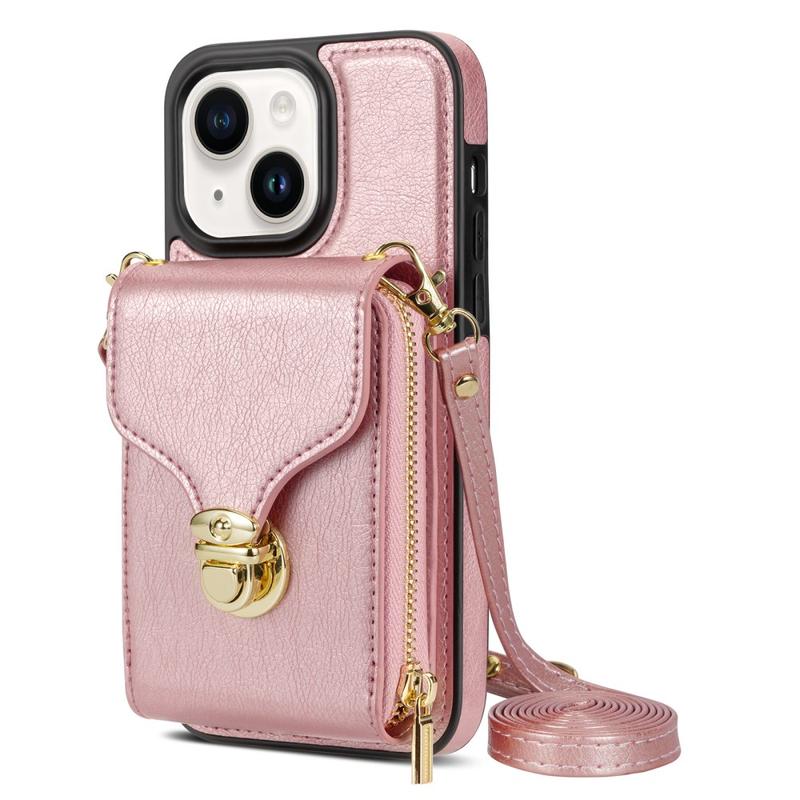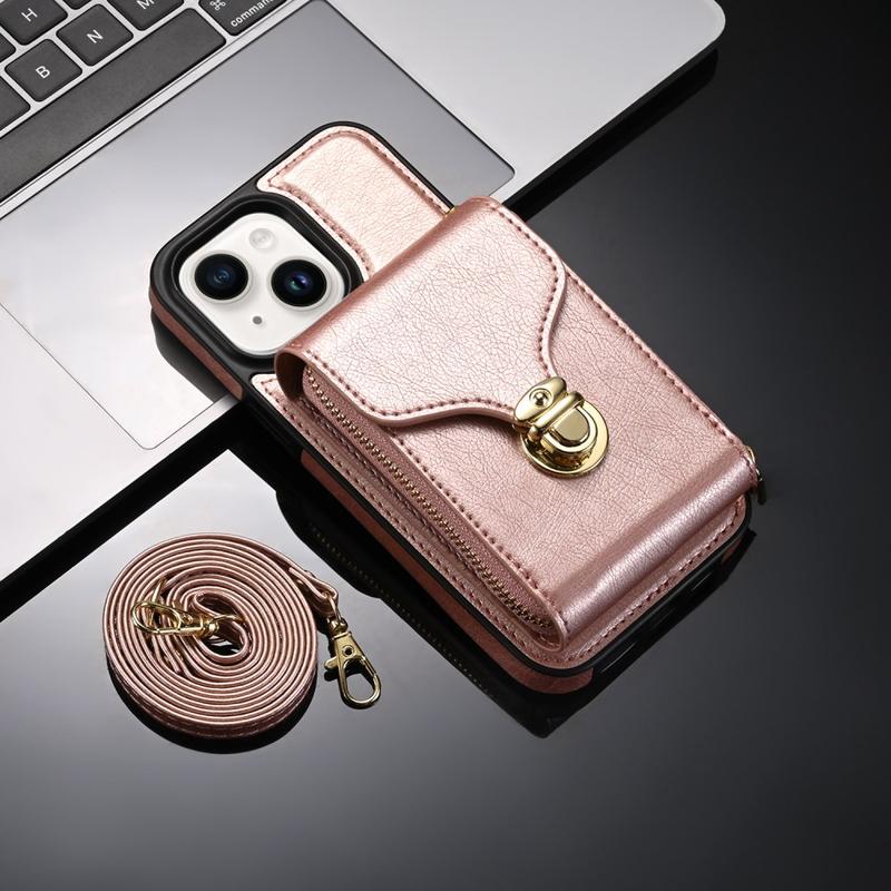 Coque protectrice tout-en-un en TPU avec portefeuille et dragonne pour iPhone 15