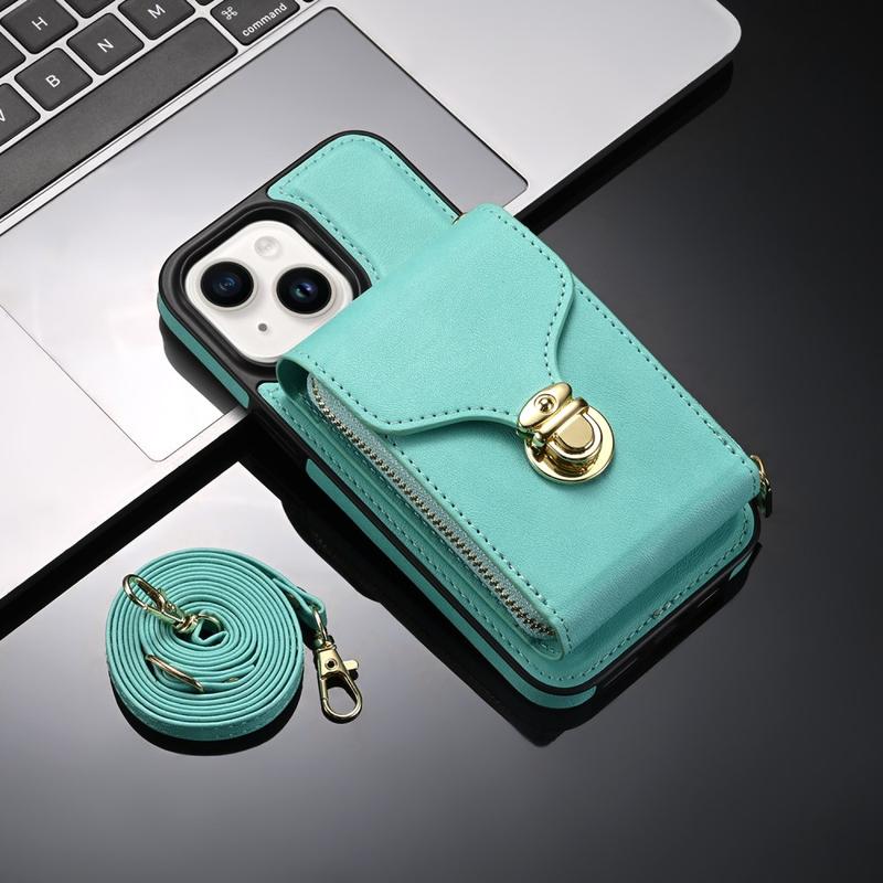 Coque protectrice tout-en-un en TPU avec portefeuille et dragonne pour iPhone 15