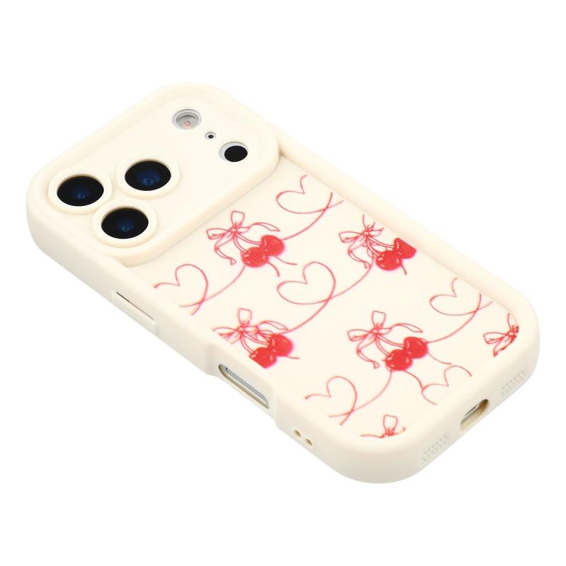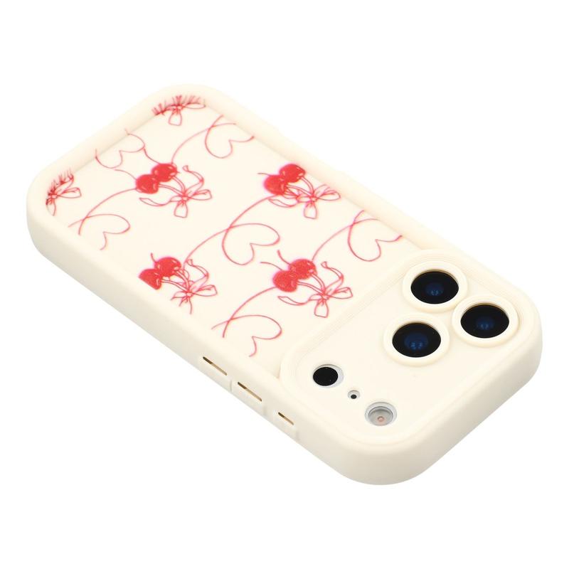 Coque TPU antichoc élégante iPhone 17 Pro avec bords relevés - Blanche / Cerises à nœud