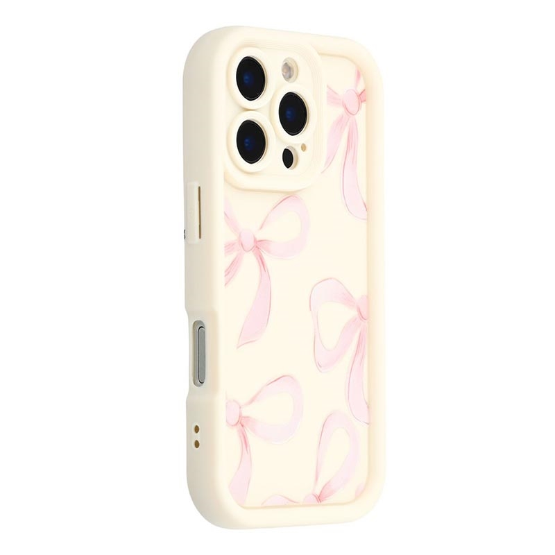 Coque TPU antichoc élégante iPhone 16 Pro avec bords relevés - Blanche / Gros nœud