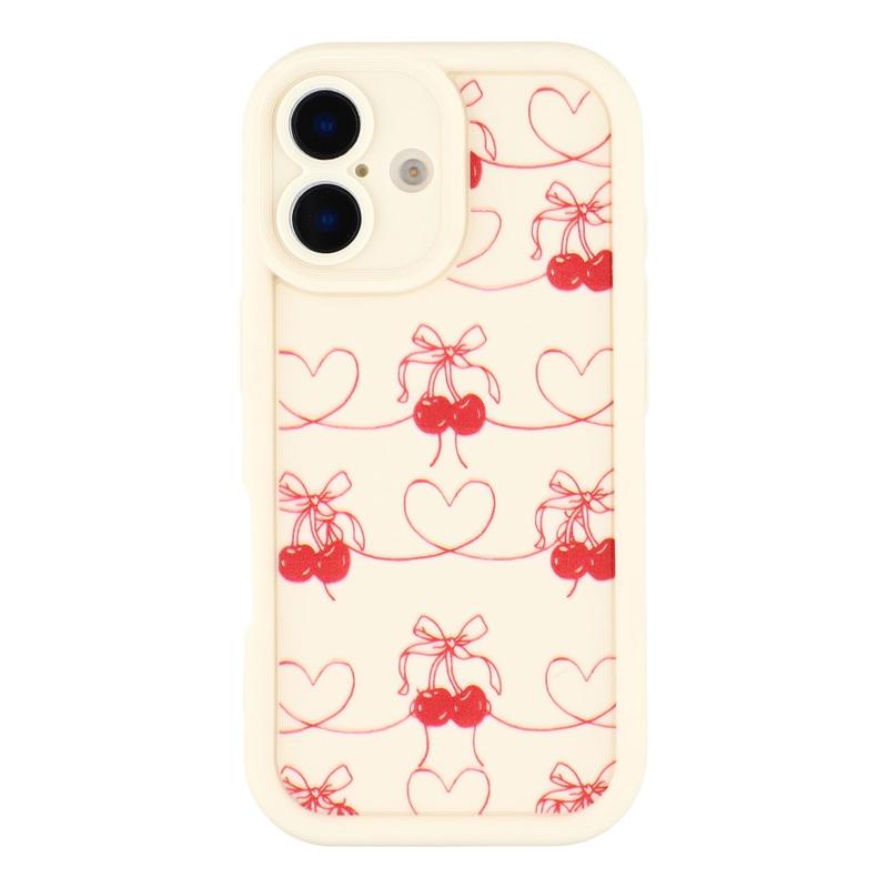 Coque TPU antichoc élégante iPhone 16 avec bords relevés - Blanche / Cerises à nœud