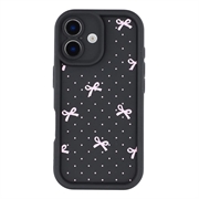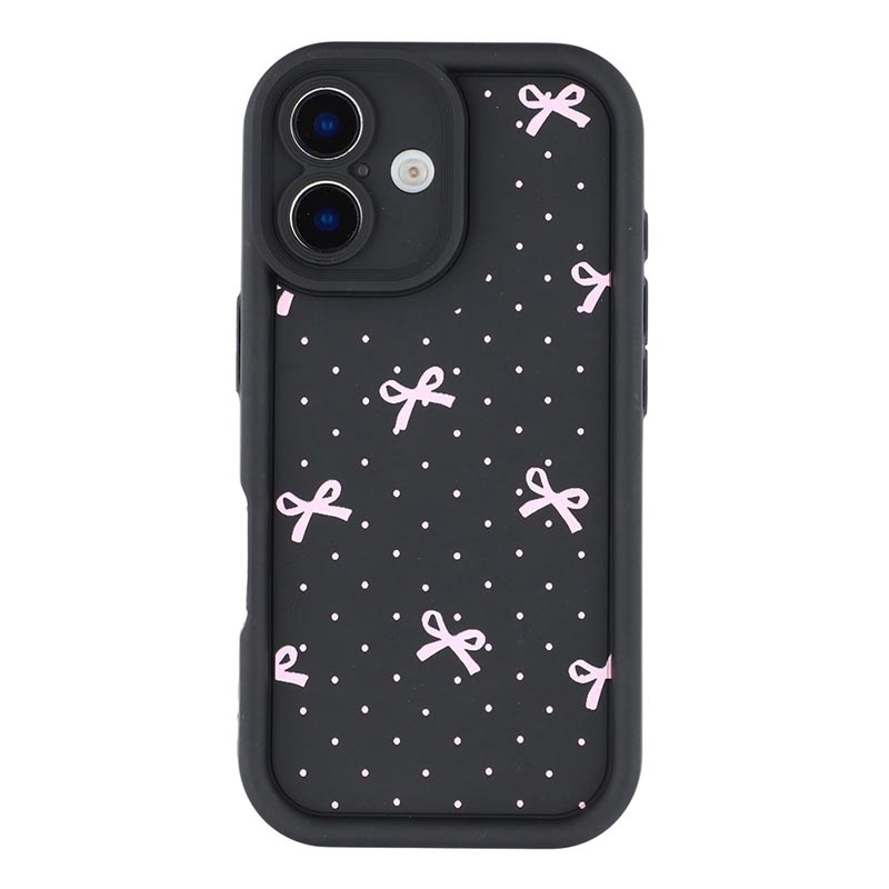 Coque TPU antichoc iPhone 16 avec bords surélevés - Noire / Noeud à pois