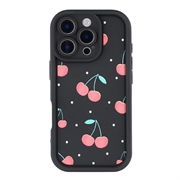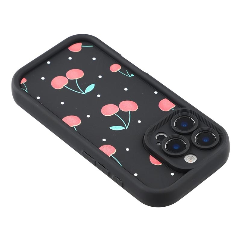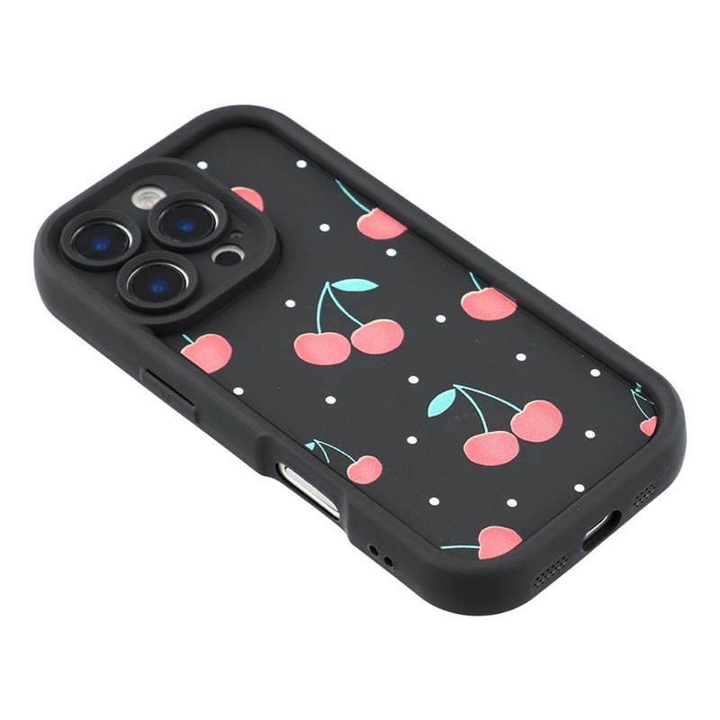 Coque TPU antichoc élégante iPhone 15 Pro avec bords surélevés - noire / Cerises