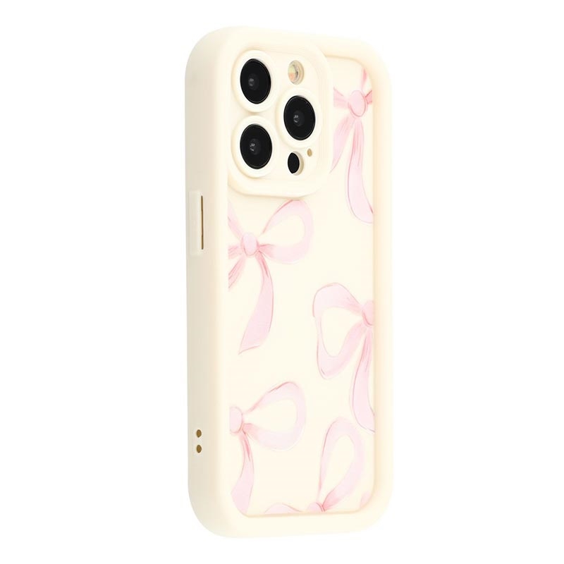 Coque TPU antichoc élégante iPhone 15 Pro avec bords relevés - Blanche / Gros nœud