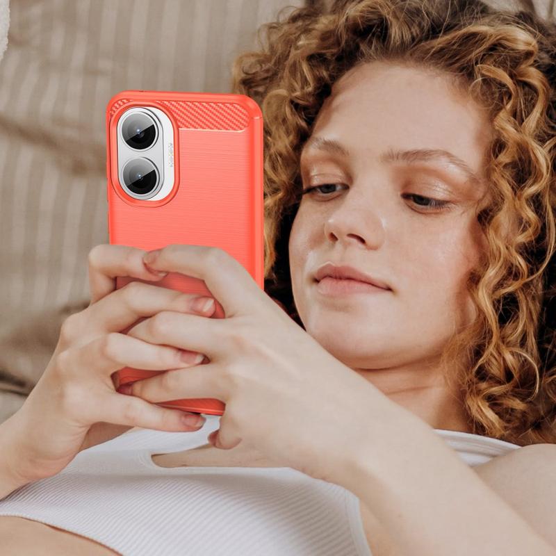 Coque Xiaomi Redmi Turbo 4 Pro en TPU Brossé - Fibre de Carbone - Rouge