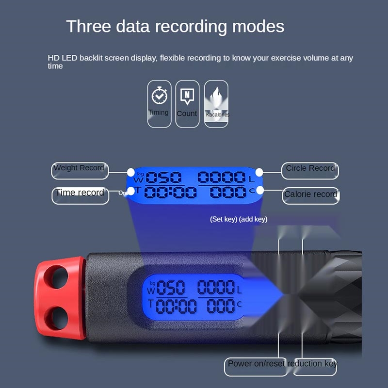 Corde à sauter réglable S09 avec compteur numérique de calories et de tours - Corde à sauter 2-en-1 avec mode sans fil