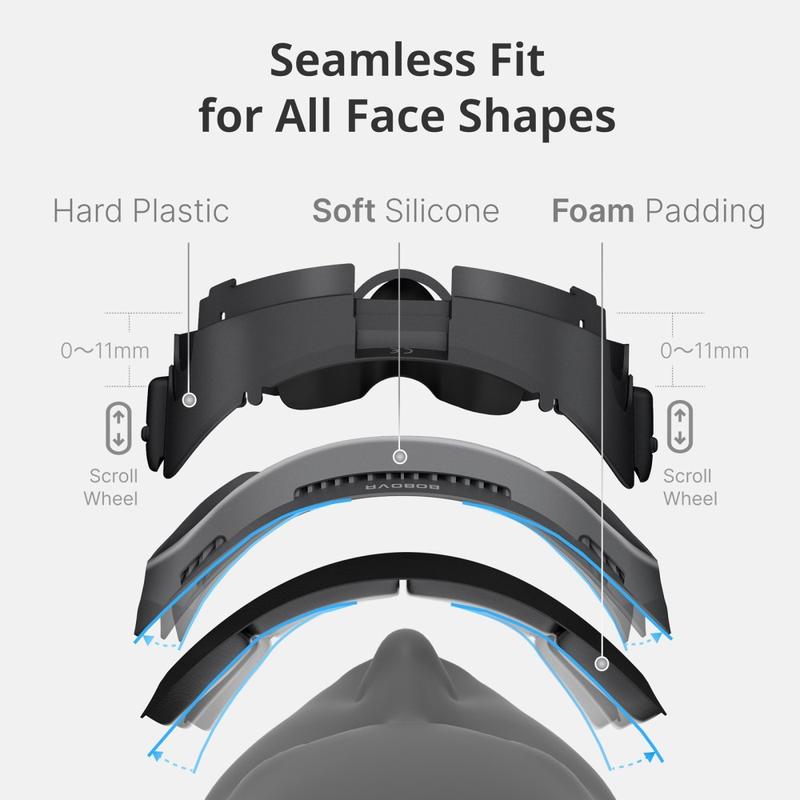 Compatible avec tous les serre-tête Meta Quest 3, ce masque facial s'adapte parfaitement à votre casque. Son rembourrage en silicone souple s'adapte naturellement aux différentes formes de visage, garantissant un ajustement sûr et confortable pour chaque utilisateur.