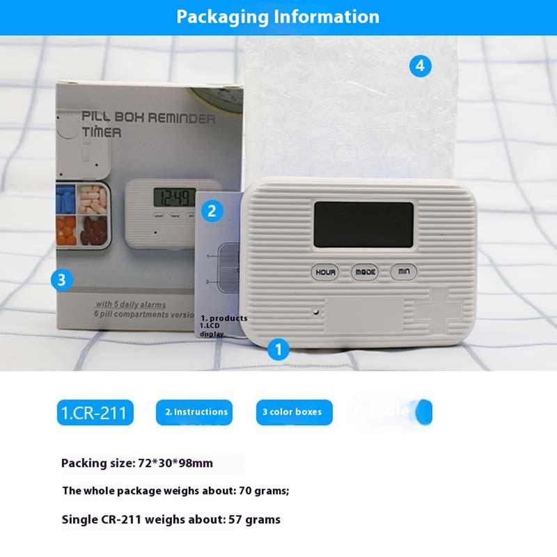 - Avec ses 62 g, le CR-211 pèse moins que deux piles AA, mais ses six compartiments peuvent contenir environ 30 comprimés de taille moyenne, soit suffisamment pour une semaine complète de traitement biquotidien.