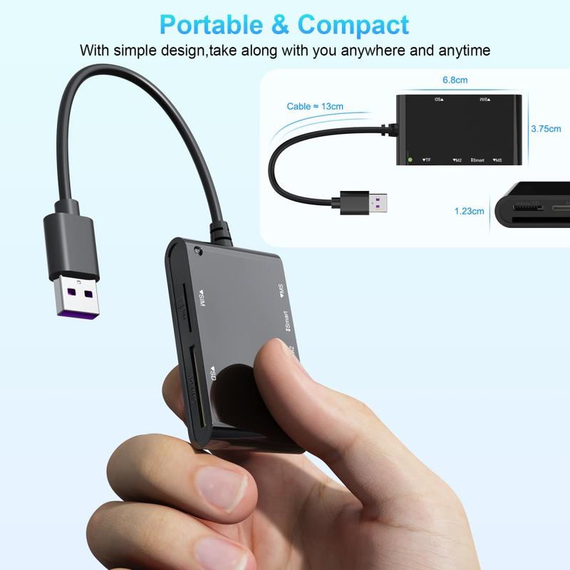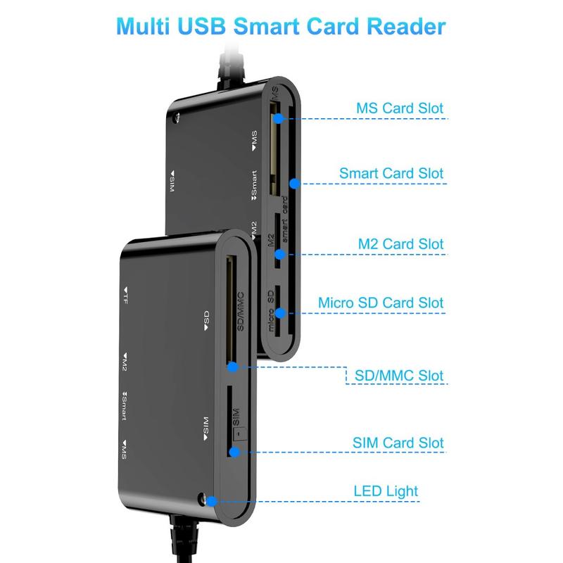 - Lecteur de cartes 6-en-1 - Prend en charge les cartes Smart, MS, M2, TF, SIM et SD pour une utilisation étendue.