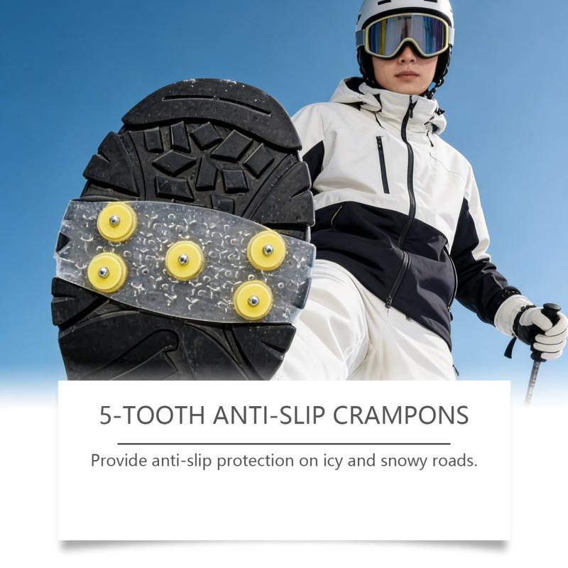 Marchez en toute confiance sur les chemins verglacés et les rues enneigées grâce aux crampons à glace HOZONEX à 5 dents. Conçus pour améliorer la traction sur les surfaces glissantes, chaque crampon utilise 5 pointes métalliques stratégiquement placées pour augmenter le contact avec le sol et aider à réduire les glissades lorsque les conditions deviennent glissantes. La base flexible en TPE s'adapte à de nombreux types de chaussures, créant un ajustement sûr qui reste stable pendant la marche sans bouger.