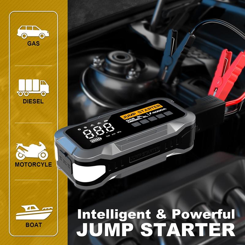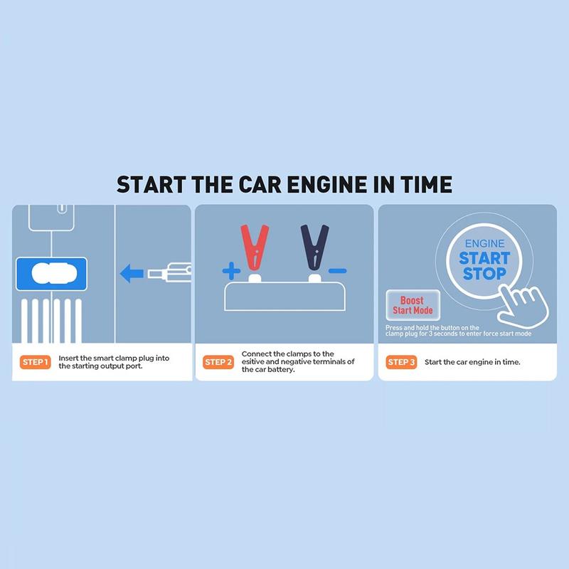Avec un courant maximal de 4 000 A, le CY97 est conçu pour aider à démarrer rapidement et en toute sécurité les véhicules essence et diesel de 12 V. Il prend en charge les véhicules essence jusqu'à 6,0 L et diesel jusqu'à 2,0 L, ce qui le rend utile pour de nombreuses voitures et véhicules plus petits. Le système de protection intelligent contribue à améliorer la sécurité pendant l'utilisation en protégeant contre des problèmes tels que l'inversion de polarité, la surintensité, la surchauffe, la surcharge et les courts-circuits.