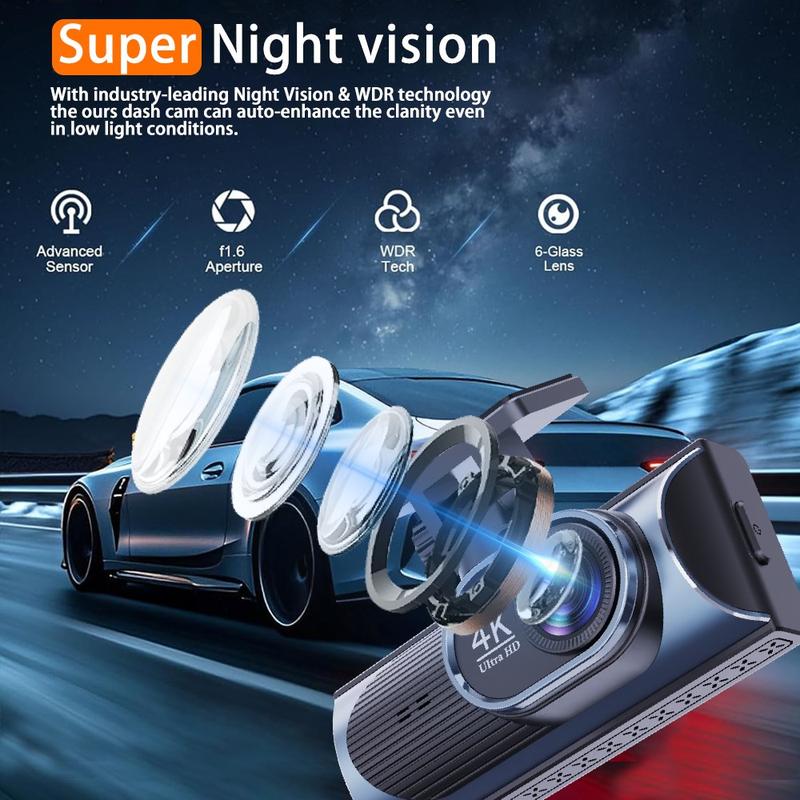 Dash Cam 4K à double objectif - DVR voiture grand angle 170 avec WiFi, suivi GPS et vision nocturne