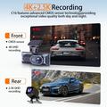 La caméra de tableau de bord 4K à double objectif offre une couverture complète de l'avant et de l'arrière avec une clarté exceptionnelle, offrant une protection fiable pendant la conduite et le stationnement. La caméra avant enregistre en véritable résolution 4K tandis que la caméra arrière capture des vidéos détaillées en 2,5K, garantissant ainsi la préservation de chaque détail crucial. L'angle de vision ultra large de 170° réduit encore davantage les angles morts pour une conduite plus sûre et plus confiante.