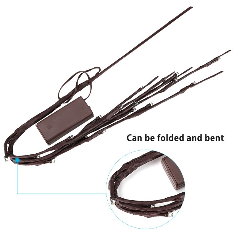 Branche d'arbre 20 LED - Lumières de brindilles décoratives pliables alimentées par piles pour Noël, les fêtes et la décoration d'intérieur
