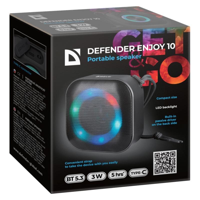 Defender Enjoy 10 Haut-parleur portable Bluetooth 5.3 - Idéal pour les déplacements avec rétroéclairage LED et pilote passif