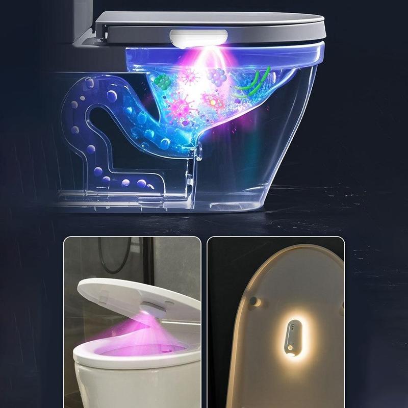 Lampe de toilettes F21 à capteur de mouvement RGB avec stérilisation UV - Veilleuse de salle de bains rechargeable, LED multicolores, recharge via USB-C