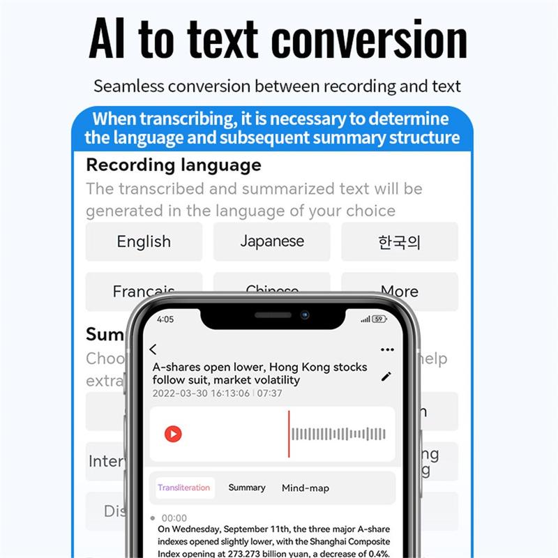 Associé à l'AIREC-APP via Bluetooth, ce dictaphone peut transcrire la parole en texte en temps réel dans 188 langues. Il offre également des traductions instantanées, ce qui en fait un outil essentiel pour franchir les barrières linguistiques dans le cadre des affaires ou des voyages.