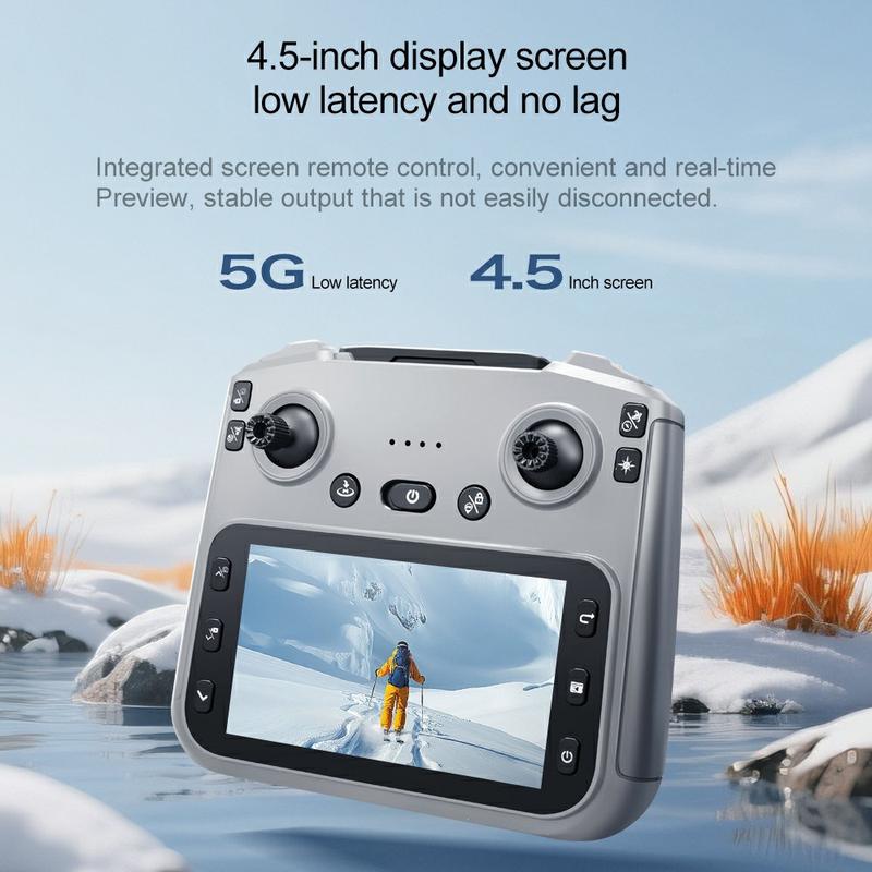 - La transmission FPV via Wi-Fi 5G permet de visualiser les images en temps réel directement sur l'écran intégré de 4,5 pouces de la télécommande.