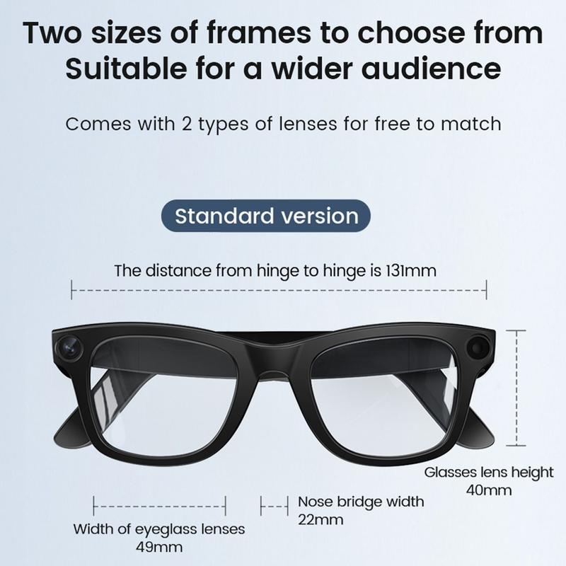 • E02 Lunettes intelligentes AI - Lunettes à double objectif avec traduction AI, anti-flou et vidéo 1080P