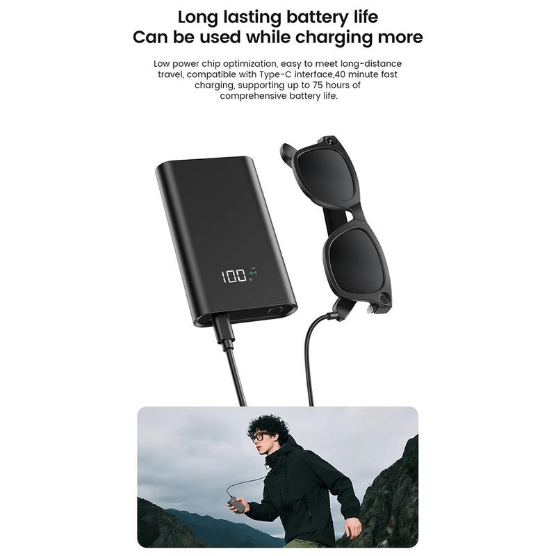 - Longue durée de vie de la batterie - Batterie 320mAh avec charge rapide Type-C ; jusqu'à 75h en veille, 10h en musique, 3h en enregistrement continu.