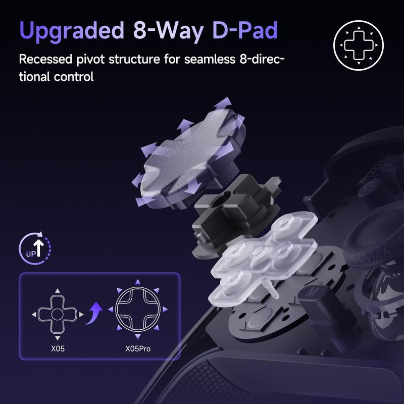 - D-Pad 8 directions redessiné - Des micro-interrupteurs tactiles assurent une saisie directionnelle nette et précise, idéale pour les jeux de combat et les combos.