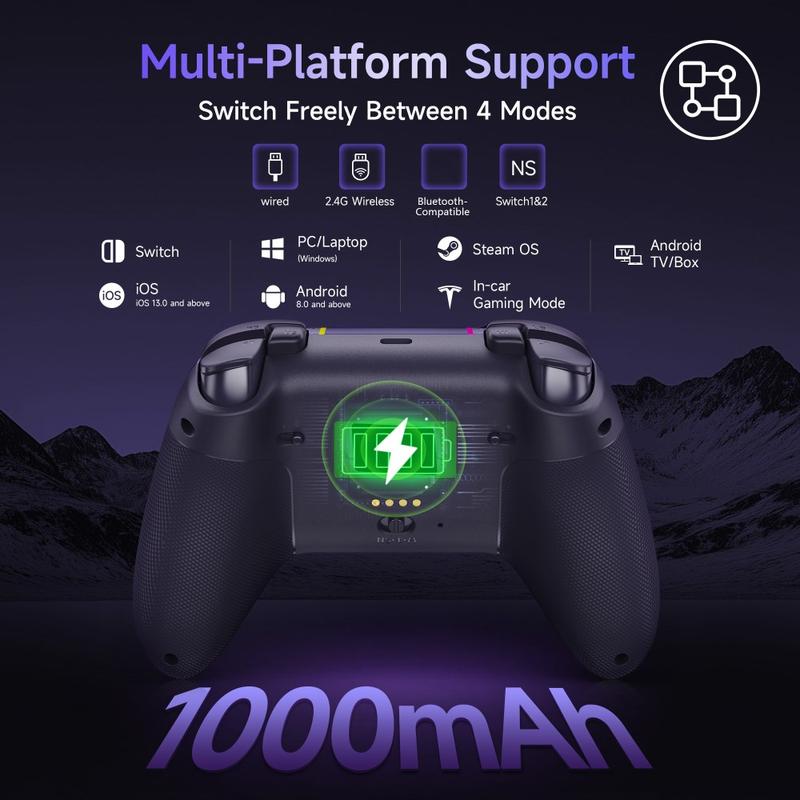 - Connectivité en trois modes - Basculez facilement entre les modes sans fil 2,4 GHz, compatible Bluetooth et USB-C filaire pour une compatibilité transparente avec la Switch, Windows, Android et iOS.