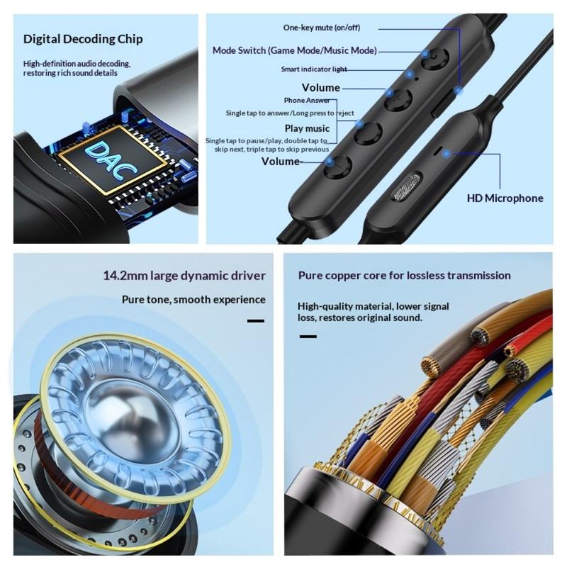 Les écouteurs filaires GC0098 Type-C sont conçus pour une expérience de jeu immersive et une écoute musicale quotidienne, alliant des performances sonores puissantes à des fonctionnalités pratiques pour un usage quotidien. Équipés d'un grand haut-parleur dynamique de 14,2 mm et d'une puce de décodage numérique intégrée, ils offrent un son stéréo Hi-Fi clair avec des basses profondes et des aigus détaillés. Avec leurs deux modes jeu et musique, leur connexion Type-C stable et leur conception magnétique qui empêche les enchevêtrements, ces écouteurs constituent un choix fiable pour les smartphones, les tablettes et autres appareils Type-C.