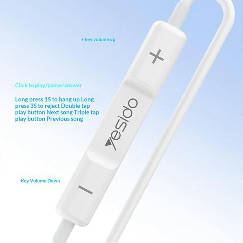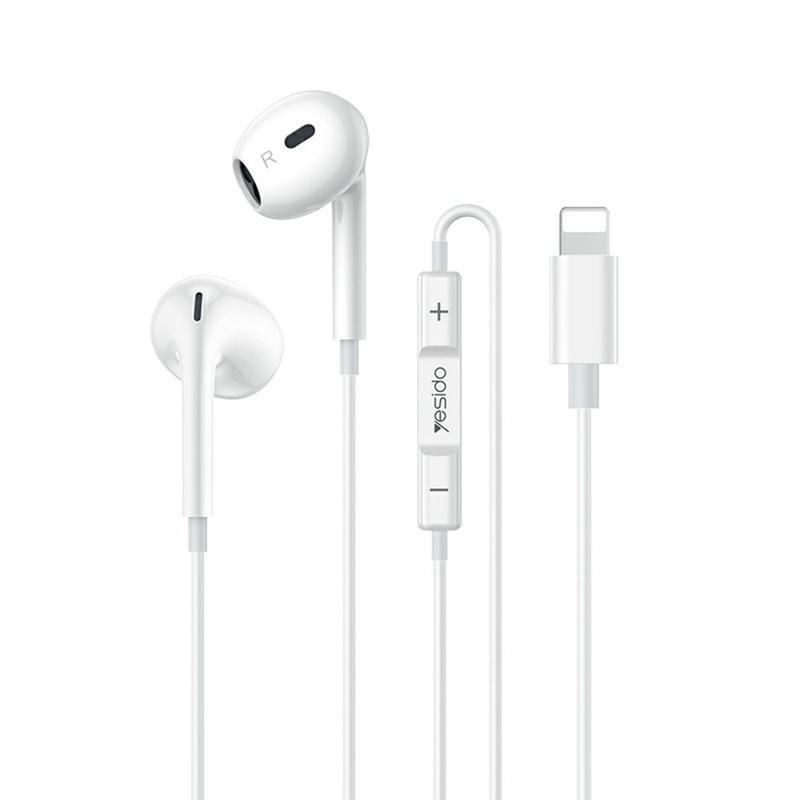 Écouteurs filaires Yesido YH51 Lightning - Écouteurs intra-auriculaires avec haut-parleur dynamique de 14 mm, micro et commandes multifonctions (1,2 m)