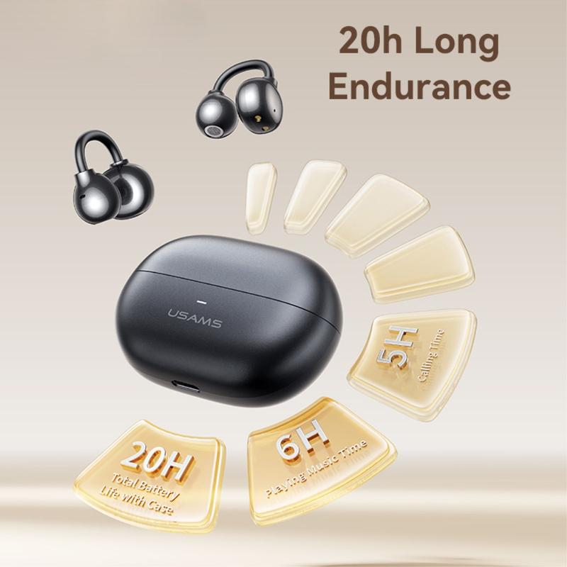 • Ecouteurs sans fil à pince Usams Echo R02 - 25 heures d'autonomie totale, confort Bluetooth 5.3 en déplacement
