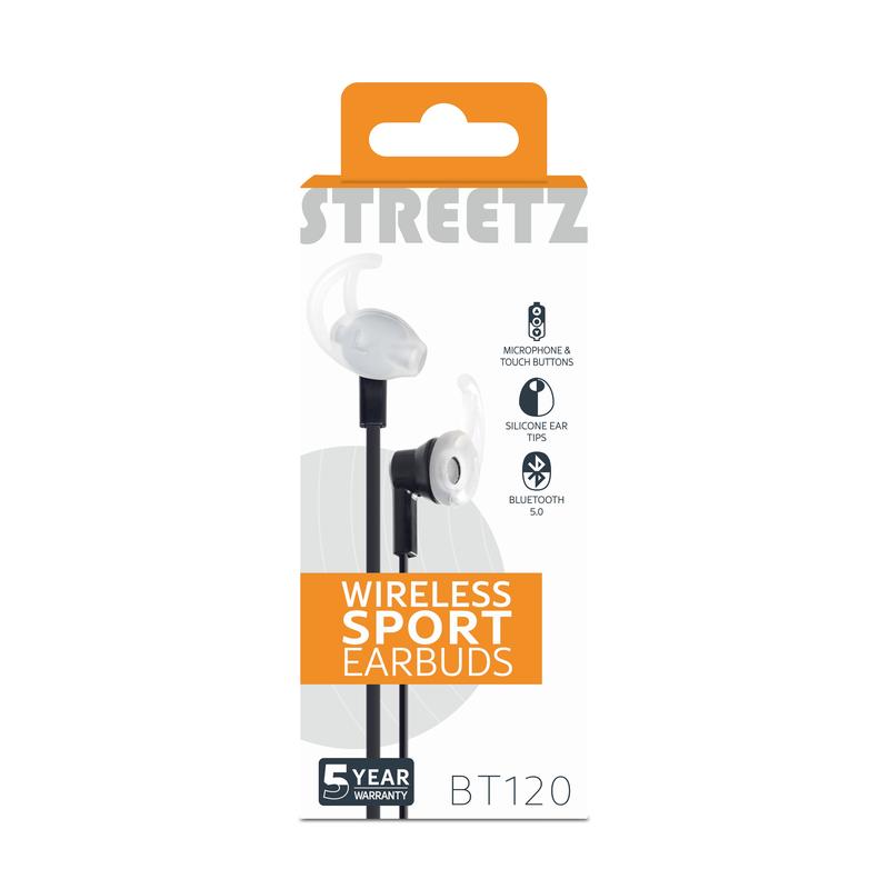 Écouteurs Bluetooth intra-auriculaires Streetz avec microphone - Écouteurs de sport sans fil avec boutons multimédia/appel, Bluetooth 5, câble de 1,2 m