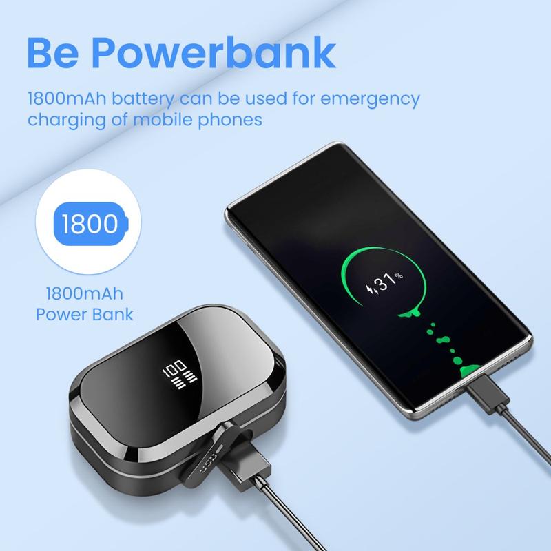 • Écouteurs sans fil Q25 avec boîtier de recharge doté d'une fonction batterie externe - Écouteurs Bluetooth 5.2 avec écran LED et 3 modes sonores
