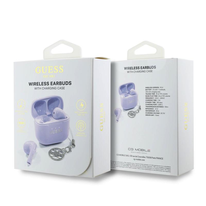 Écouteurs True Wireless Guess Charm avec effet brillant et logo classique - violet