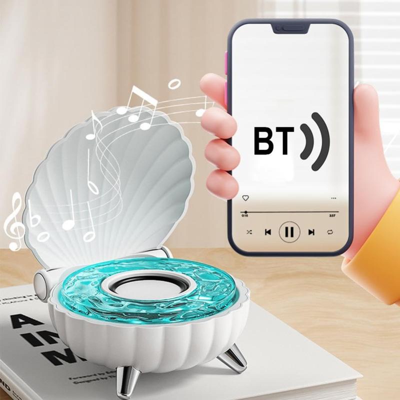 Enceinte Bluetooth en forme de coquillage avec éclairage ambiant RVB - 5W, 1200mAh, USB-C