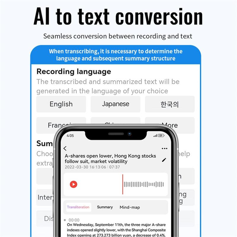 - La fonction de transcription AI prend en charge 59 langues, ce qui en fait un outil polyvalent pour les utilisateurs internationaux.