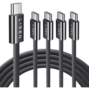 Ensemble de câbles USB-C vers USB-C tressés Lisen - 60W, 3A, 5 pièces - Noir