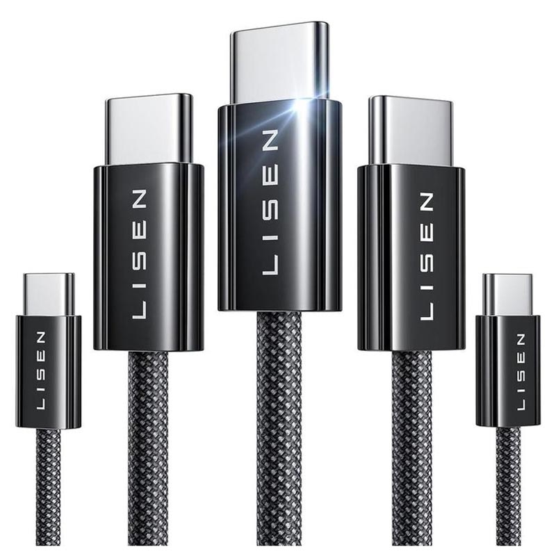 • Ensemble de câbles USB-C vers USB-C Lisen - 60W, 3A, recharge rapide Power Delivery, nylon tressé, plusieurs longueurs