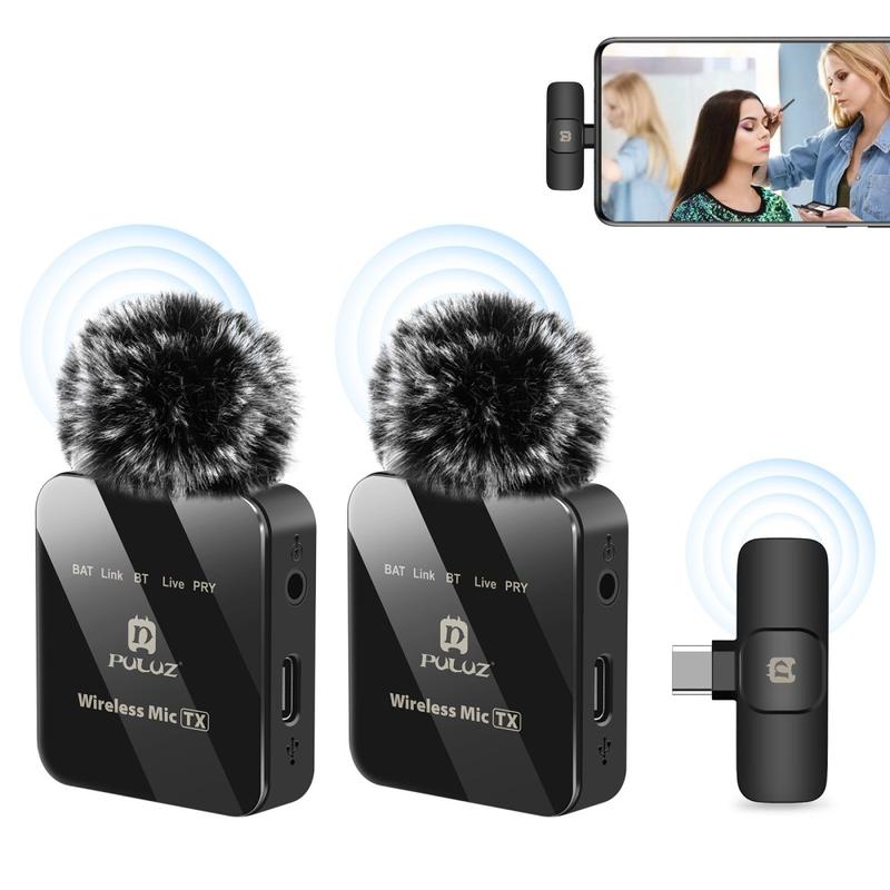• Microphone cravate sans fil double Puluz PU648B avec récepteur Type-C, réduction de bruit ENC et audio 48 kHz
