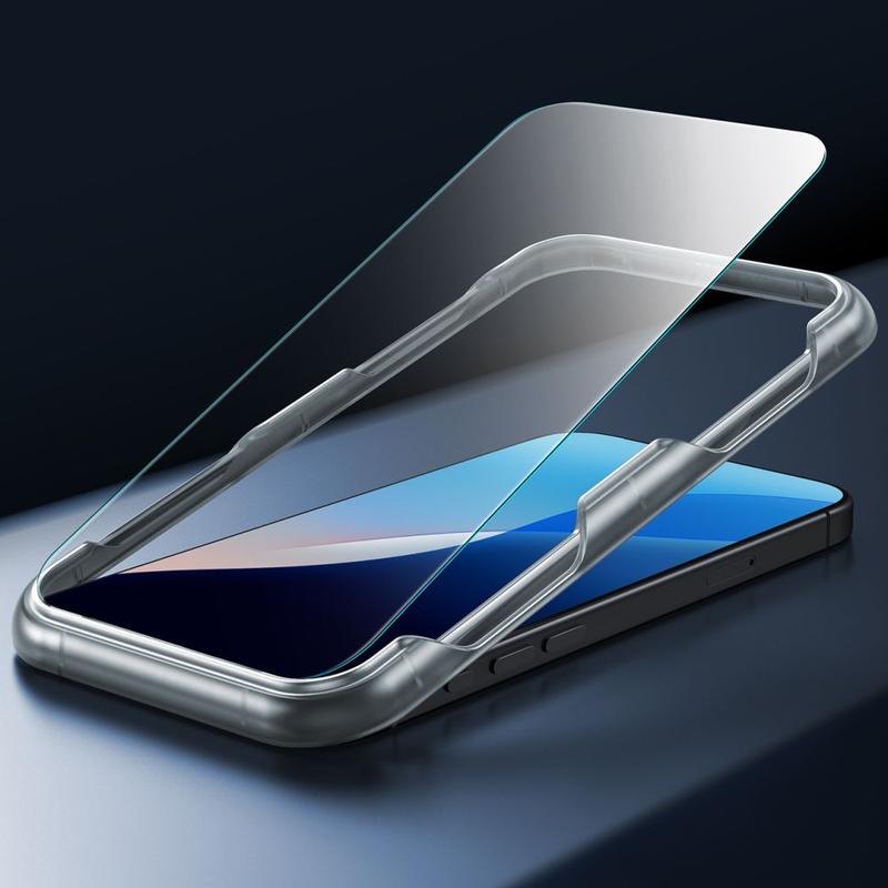 L'installation du verre est extrêmement facile - le cadre de positionnement inclus dans le kit facilite l'installation. C'est la combinaison parfaite de confort, de sécurité et de fonctionnalité pour votre iPhone 16 Pro.