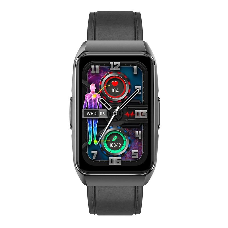 ET650 Montre intelligente étanche avec température corporelle, moniteur de santé et appel Bluetooth - Bracelet en cuir et silicone