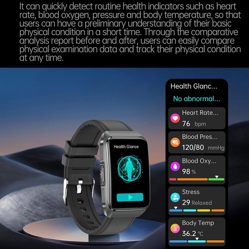 Améliorez votre routine quotidienne avec la montre intelligente ET650. Dotée d'un élégant bracelet en cuir et en silicone, cette montre polyvalente offre un suivi de la température corporelle en temps réel, un suivi de la santé et des appels Bluetooth pratiques, le tout dans un design élégant et durable. Restez connecté et informé où que vous alliez avec une montre intelligente conçue pour allier harmonieusement forme et fonction.