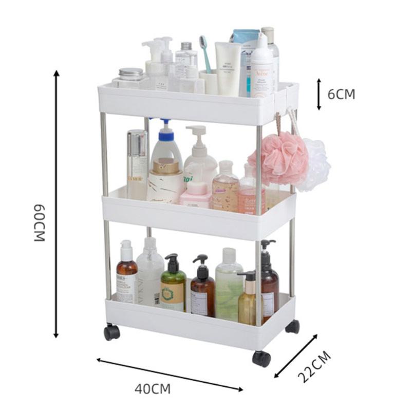 • Chariot de rangement pour salle de bains à 3 niveaux avec roues / étagère à roulettes