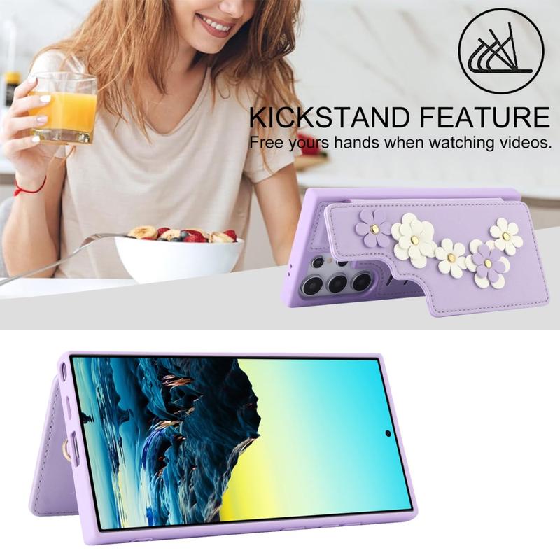 Etui décoré de fleurs avec sangle et fentes pour cartes pour Samsung Galaxy S24 Ultra