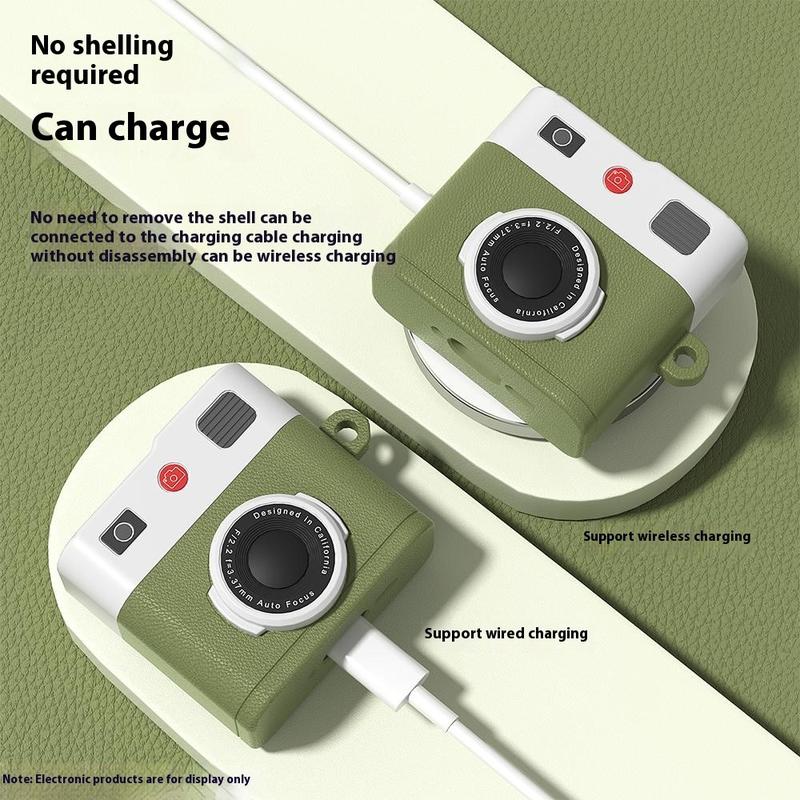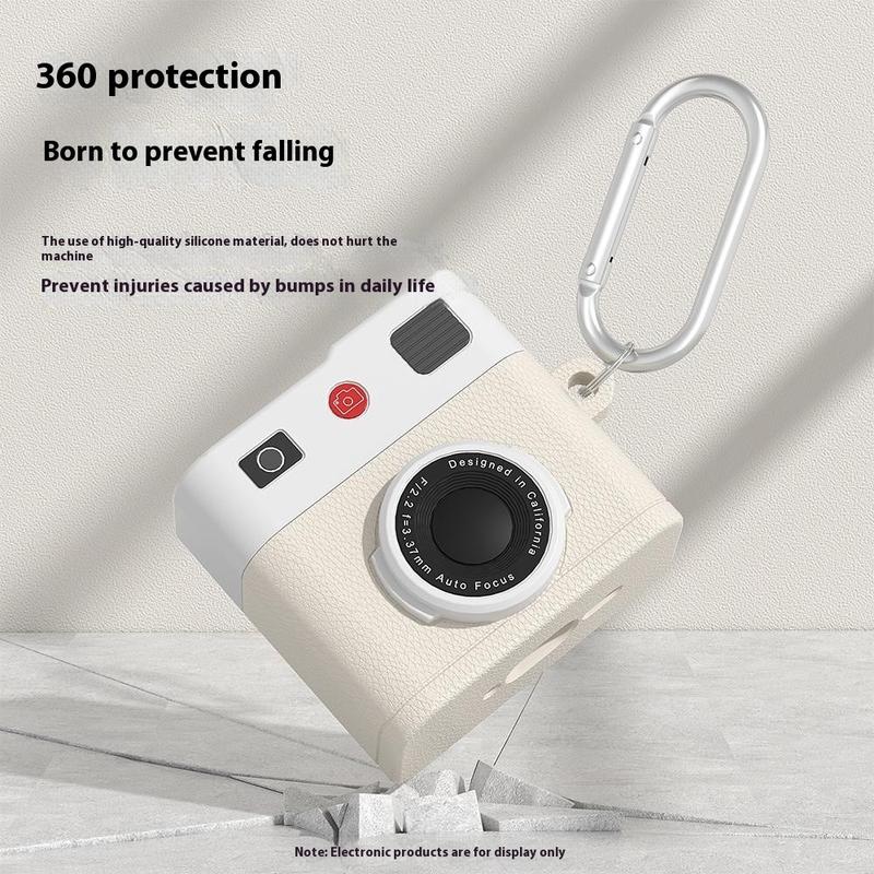 Cet étui est un mélange parfait de style et de fonctionnalité. Il offre une protection haut de gamme à vos AirPods 4, avec la commodité supplémentaire d'un support de charge sans fil et d'un mousqueton portable. Le design rétro de l'appareil photo lui confère un look original et nostalgique.