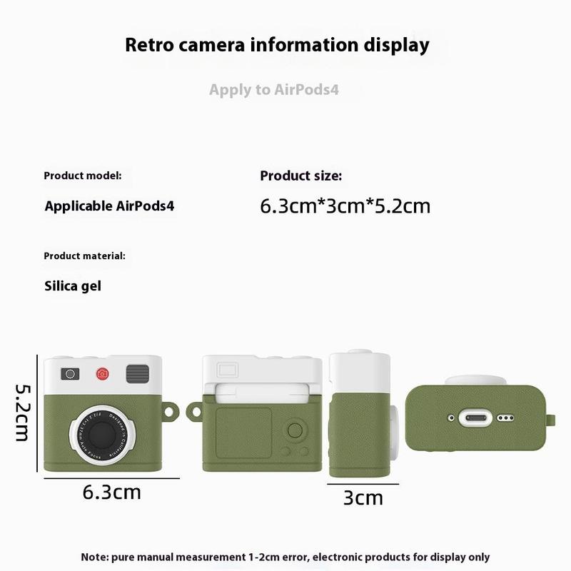 Étui en silicone liquide - Conception d'appareil photo rétro pour AirPods 4