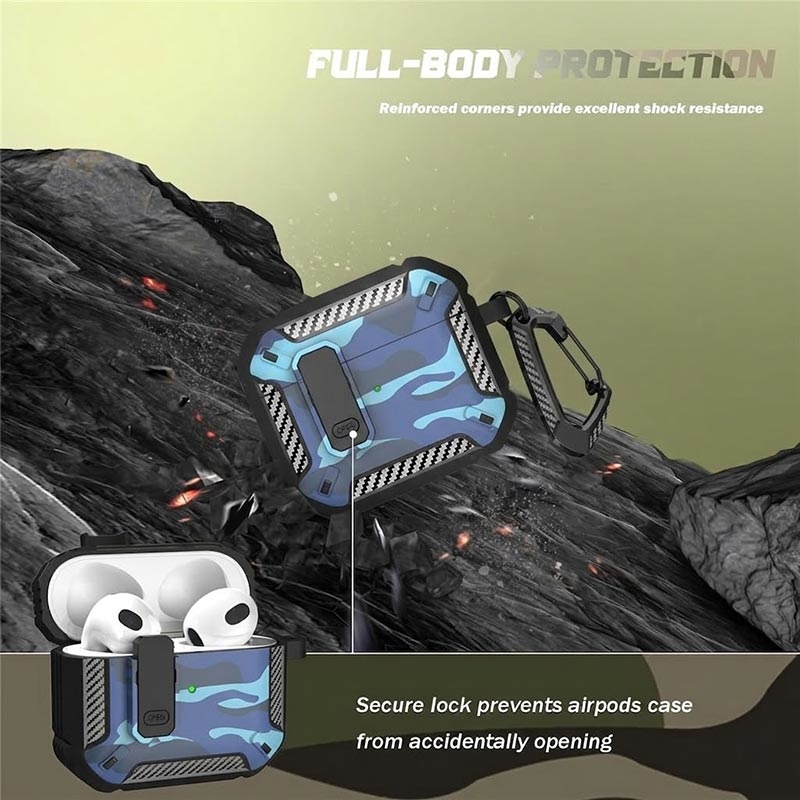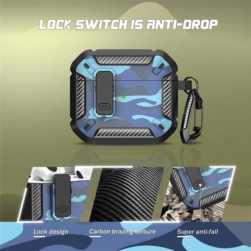 Étui antichoc camouflage pour AirPods 4 avec mousqueton - Camouflage bleu