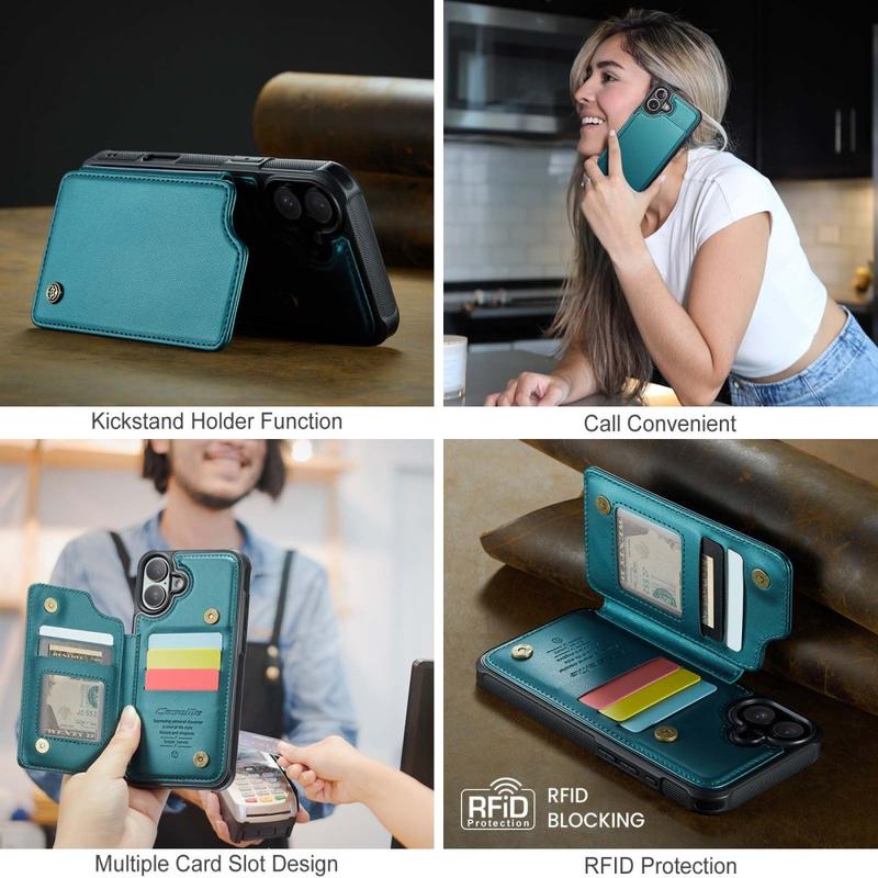 Étui Caseme C22 pour iPhone 16 Plus avec portefeuille de cartes protégé par RFID